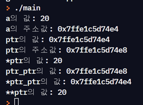 cout << "*ptr_ptr의 값: " << *ptr_ptr << endl; //ptr의 값을 나타냄