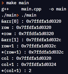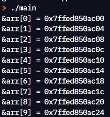 std::cout << "arr + 1 = " << arr + 1 << std::endl; //4가 더해짐 -> int형의 크기만큼 더해짐
